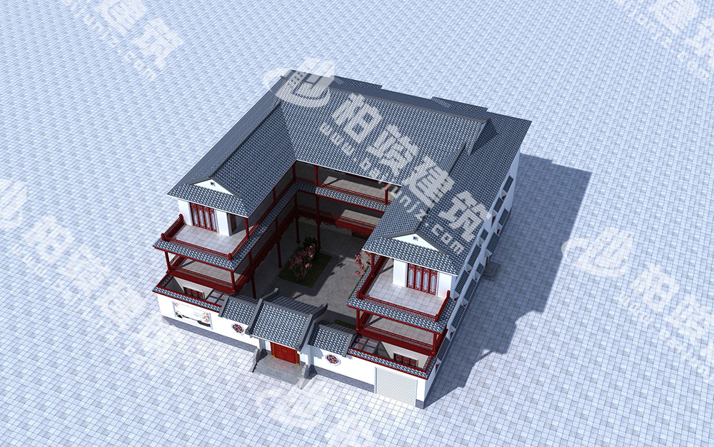 一进三层新古典风格四合院设计图,13室7厅12卫,带电梯、车库