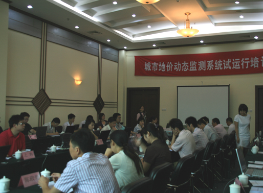 培训会由中国土地勘测规划院地价所所长赵松主持,国土资源部土地利用管理司黄清处长在会议上致开幕辞,他指出城市地价动态监测工作是一项重要的日常性工作,今后要全部通过计算机系统上报相关数据。此外,他还对各技术承担单位的工作提出了一些具体要求。会上,中国土地勘测规划院地价所高级工程师周光源就城市地价动态监测计算机系统作了详细介绍。随后,在城市地价动态监测项目组技术人员的辅导下,参训人员参加了地价动态监测计算机系统培训测试,在线上报监测数据,一方面测试系统能否满足正式运行的要求,另一方面测试上报表格的完善性和正确性,从而进一步熟悉整个监测系统的操作方法。城市地价动态监测项目组技术人员还对参训人员进行了现场答疑。